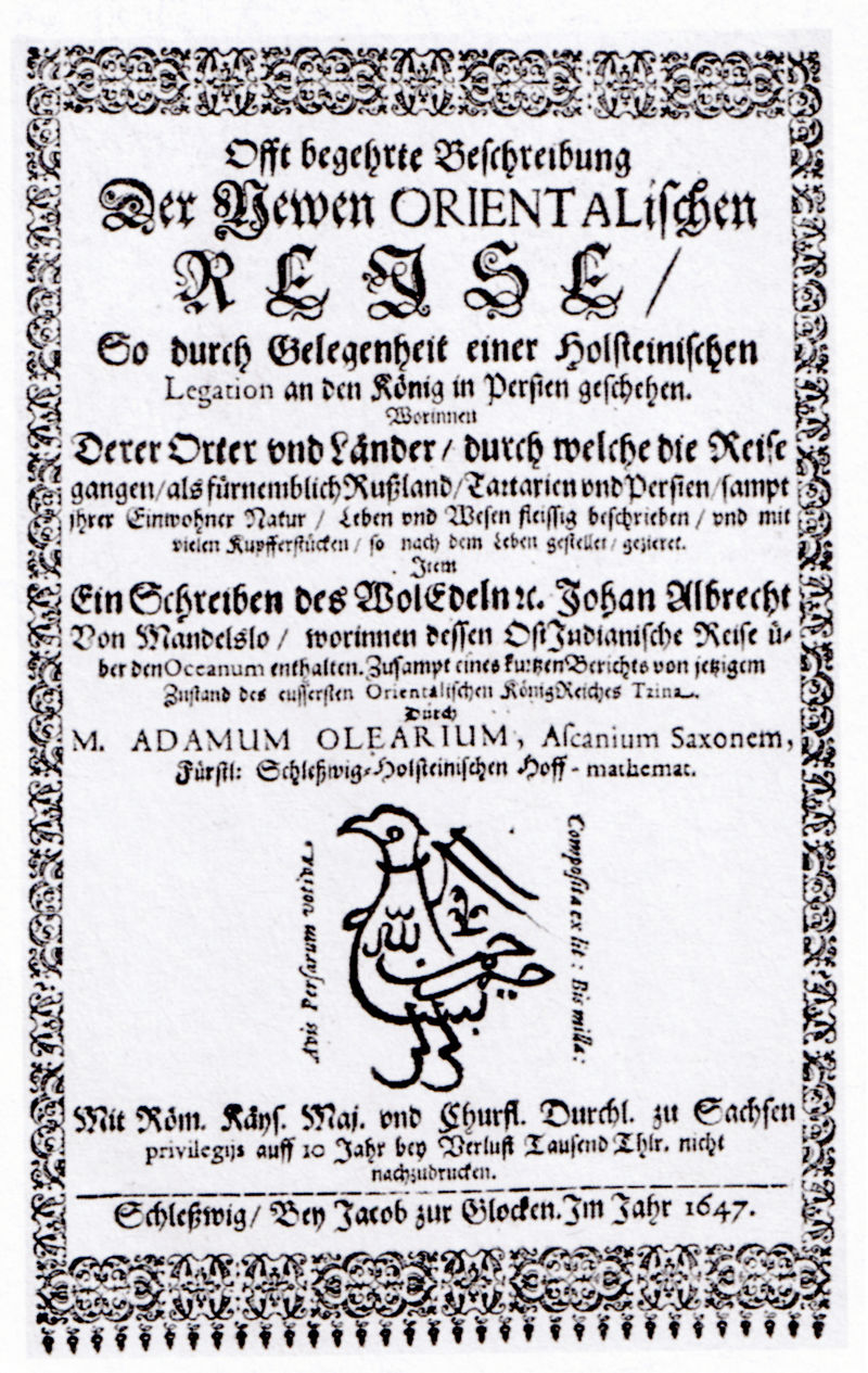 In den Jahren 1635 bis 1639 fand eine Handelsexpedition der schleswig-holsteinischen Gesandtschaft Friedrichs III. über Russland an den persischen Hof in Isfahan statt, deren Reisebeschreibung durch Adam Olearius, Moskowitische und persische Reise (erstmals 1647, zur endgültigen Fassung erweitert 1656) eine gelehrte Proto-Ethnographie ist, die als die erste wissenschaftliche Reisebeschreibung gilt.