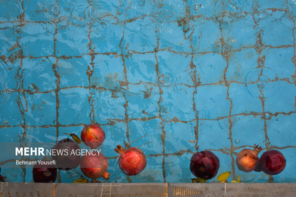 Einer der bekanntesten Auftritte des Granatapfels in der iranischen Kultur findet sich während der Yalda-Nacht, der längsten Nacht des Jahres, die zur Wintersonnenwende gefeiert wird. Familien versammeln sich, um diesen Anlass mit Gedichten, Erzählungen und einem Festmahl aus saisonalen Früchten zu begehen – wobei Granatäpfel im Mittelpunkt stehen. Die tiefroten Kerne der Frucht symbolisieren Leben, Wärme und das Leuchten der Sonne in der dunkelsten Zeit des Jahres.