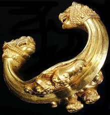Rhytha: Rhytha, also Trinkhörner aus Gold zeigen die Köpfe von Wildschafen und Gazellen als Protome (Verzierung der Spitzen). Große Flächen des Gefäßkörpers bleiben unornamentiert und weisen im Stil bereits auf den achämenidischen Reichsstil. Eine Anzahl vergleichbarer Rhytha aus Silber aus dem Nordiran stammt aus dem Kunsthandel.