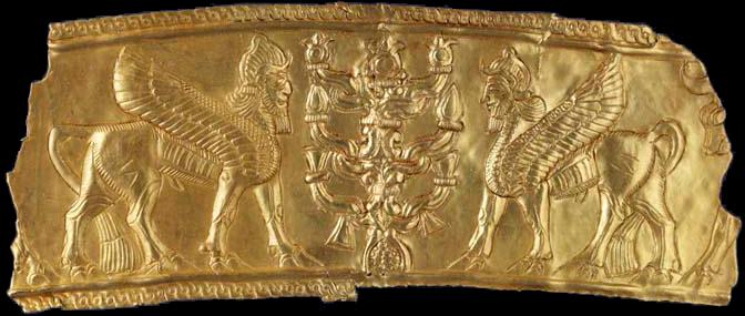 Pektoral: Ein goldener Brustschmuck (Pektoral) wird meist in das 7. Jh datiert. Er zeigt eine Prozession von geflügelten Mischwesen, geflügelte Stiere, geflügelte Genien mit Stierfüßen, Greifen mit menschlichen Beinen und geflügelte Widder, zu einem zentralen Lebensbaum, der von Palmetten gekrönt ist und zeigt assyrischen und urartäischen Einfluss; M. van Loon spricht von einem syro-uratäischen Stil. Pektorale finden sich jedoch besonders auf urartäischen Darstellungen von Königen oder Göttern.