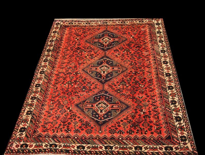 Der Schiraz zählt zu den einfacheren Nomadenteppichen. Typisch für den Schiraz ist ein reiches Muster. Die Muster sind oft vertikal angeordnet und basieren auf drei Rauten als Grundmotiv.