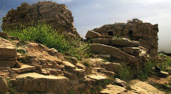 Von einem Palast, der einst dort stand, sind heute flachgeschliffene Steintafeln, runde Säulen und einige Steinmauern und Bögen erhalten geblieben.