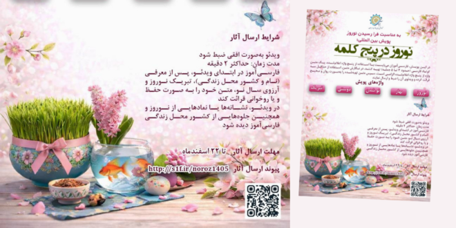همچنین تأکید شده است که در ویدئوهای ارسالی، نشانهها یا نمادهایی از نوروز و جلوههایی از کشور محل زندگی فارسیآموزان قابل مشاهده باشد.