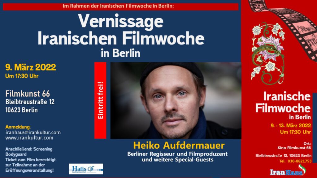 Am 9.3.2022 eröffnet Heiko Aufdermauer die Iranische Filmwoche in Berlin, Filmkunst66, 17.30 Uhr.