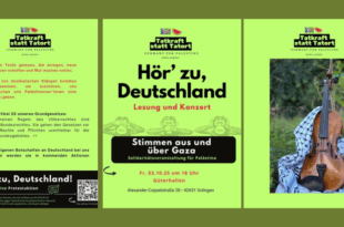 Stimmen aus und für Gaza! Freitag, 03. Oktober 2025, 18:00 Uhr „Human rights are never simply …