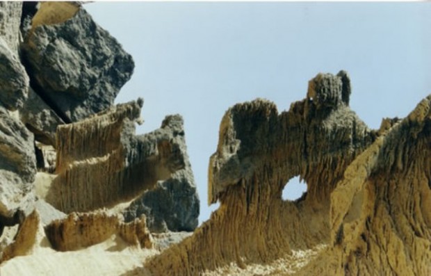 Hier trifft man auf Tausende kleinere und größere kegelförmige Hügel, die durch Wind und Wetter zu ihrer Form gefunden haben und in den vergangenen geologischen Zeiten entstanden sind. Tief in der Wüste sprudelt eine schwefelhaltige Quelle aus dem Boden.