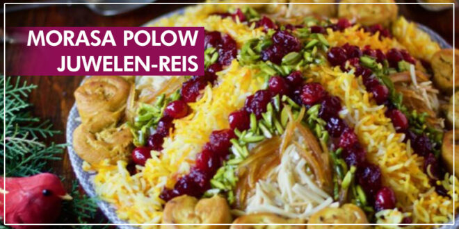 Das süße Festgericht der persischen Tradition wird oft bei Hochzeiten serviert, um dem Brautpaar etwas Süßes zu bereiten. Morasa Polow (persisch: مرصع پلو ) ist der König aller persischen Gerichte und auch als „Dschawaher Polow“ bekannt , was übersetzt „ Juwelenbesetzter Reis “ bedeutet .