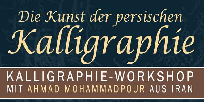 Für alle, die an der Persischen Kalligraphie interessiert sind, finden wieder verschiedene Workshops in Berlin, Bamberg und Erfurt statt. Ahmad Mohammadpour, der Meisterkalligraph aus Iran, weist mit viel Geduld und langjähriger Erfahrung in die Kunst der persischen Kalligraphie ein. Gemeinsam schreiben Sie Ihr eigenes Kunstwerk und können es anschließend mitnehmen. Papier und Stifte werden zur Verfügung gestellt. Der Workshop richtet sich sowohl an Anfänger als auch für erfahrene Teilnehmer.