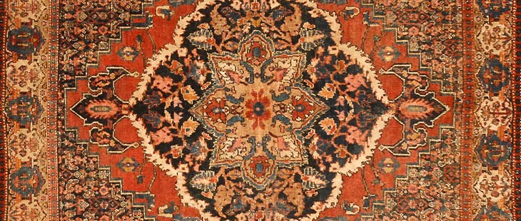 Diese, wie auch die häufig wiederholten Boteh-Muster deuten auf einen möglichen Einfluß aus dem Indien der Moghulzeit hin. Das Feld erscheint oft in der Grundfarbe Blau oder Blassrot.