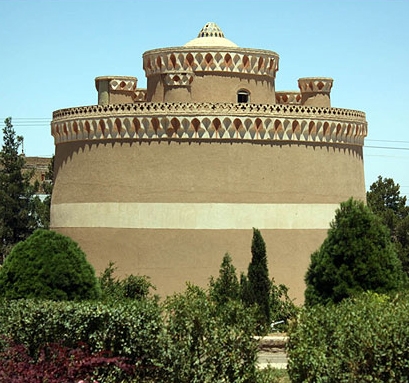 Taubentürme (Borj-e-Kabutar – „Taubenburg“, oder allgemeiner Kabutar Khaneh − „Taubenhaus“, persich کبوتر خانه) aus kalkverputzten Lehmziegeln haben meist die Form abgestumpfter Pyramiden oder von Rundtürmen mit flachen Dächern, wobei auch sich stufenförmig nach oben verjüngende Türme vorkommen.