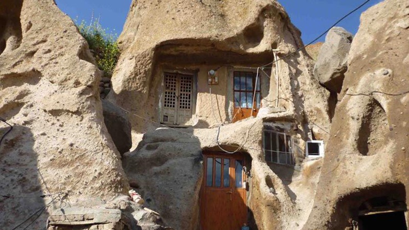 Das Felsendorf Kandovan liegt in der Provinz Ost-Aserbaidschan und in der Stadt Osku mit Häusern im Herzen von Felsen in Form von Vulkankegeln. Es hat ein gebirgiges Klima und ist bekannt als das Felsendorf Irans und das dritte Felsendorf der Welt.
